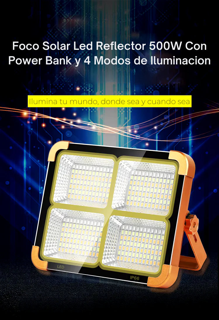 Foco Solar Led Reflector 500W Con Power Bank y 4 Modos de Iluminación + Envío Gratis!